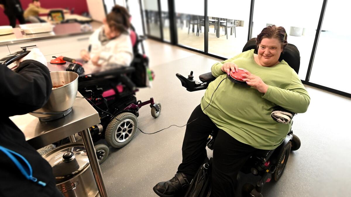 What’s cooking?: Karen Parr helps mix cake batter in the kitchen.