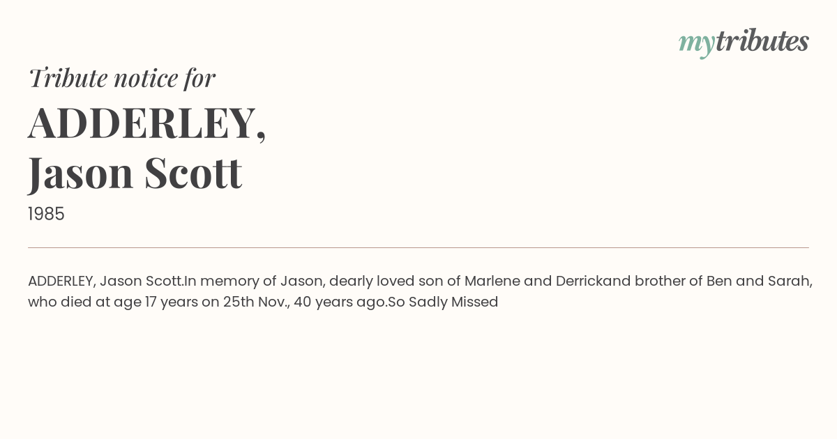 In memory of Jason, dearly loved son of Marlene and Derrick