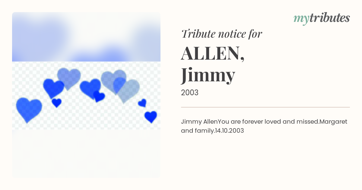 Jimmy AllenYou are forever loved and missed.Margaret and family.14.10.2003