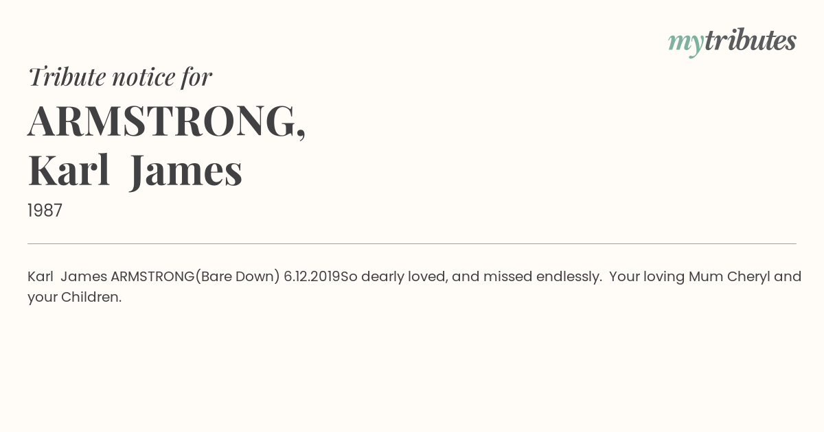 So dearly loved, and missed endlessly. Your loving Mum Cheryl and your Children.