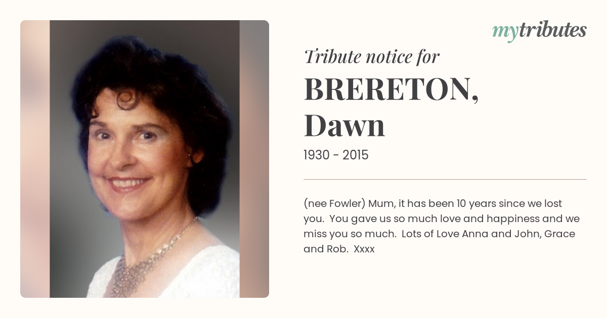 18°C(nee Fowler) Mum, it has been 10 years since we lost you. You gave us so much love and happiness and we miss you so much. Lots of Love Anna and John, Grace and Rob. Xxxx