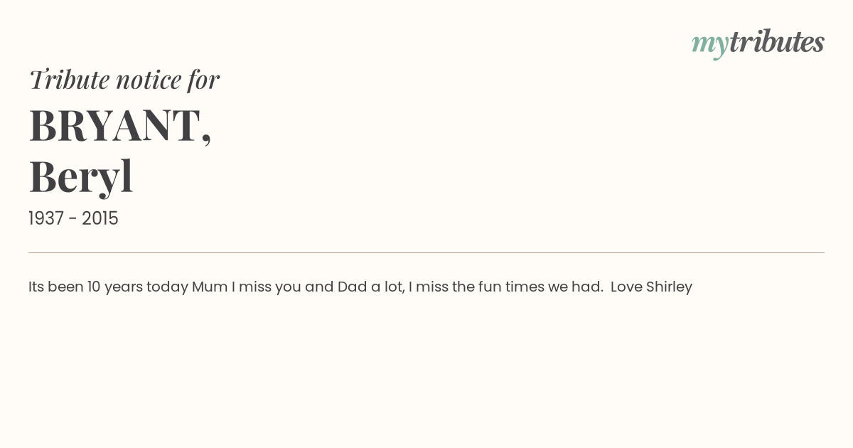 18°CIts been 10 years today Mum I miss you and Dad a lot, I miss the fun times we had.