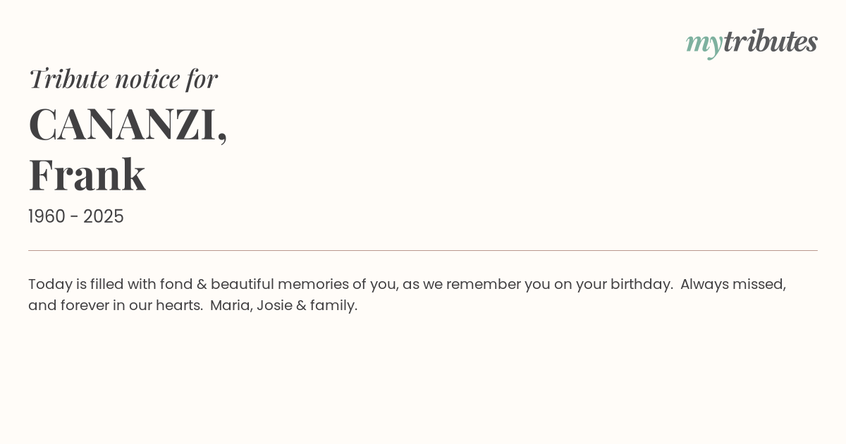18°CToday is filled with fond & beautiful memories of you, as we remember you on your birthday. Always missed, and forever in our hearts. Maria, Josie & family.