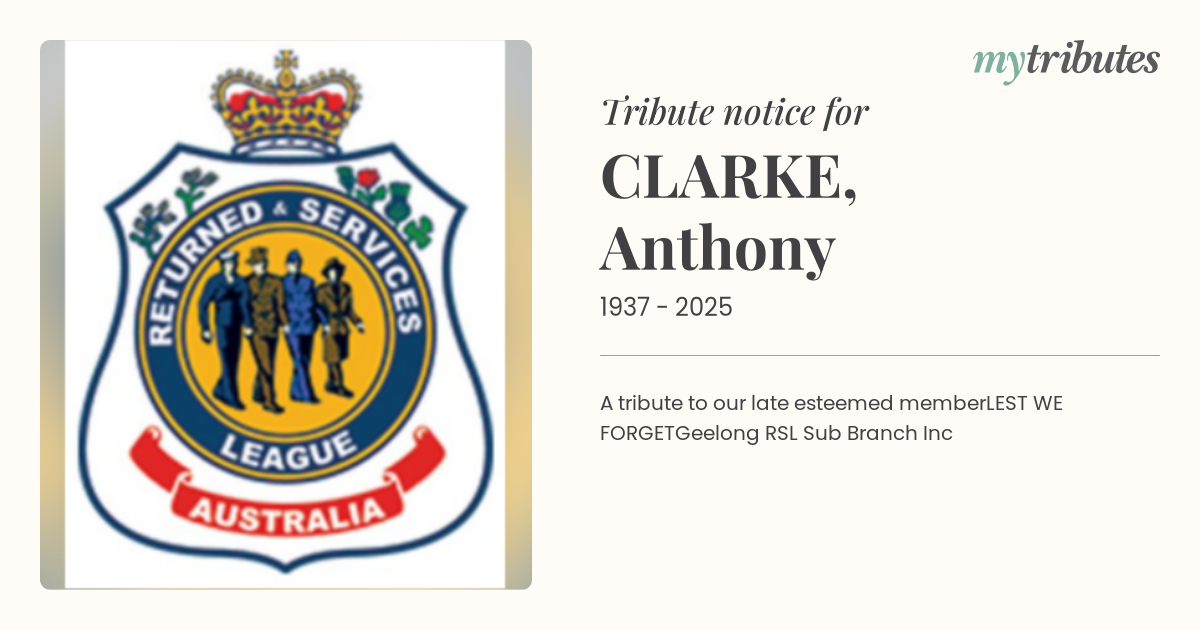 A tribute to our late esteemed memberLEST WE FORGETGeelong RSL Sub Branch Inc