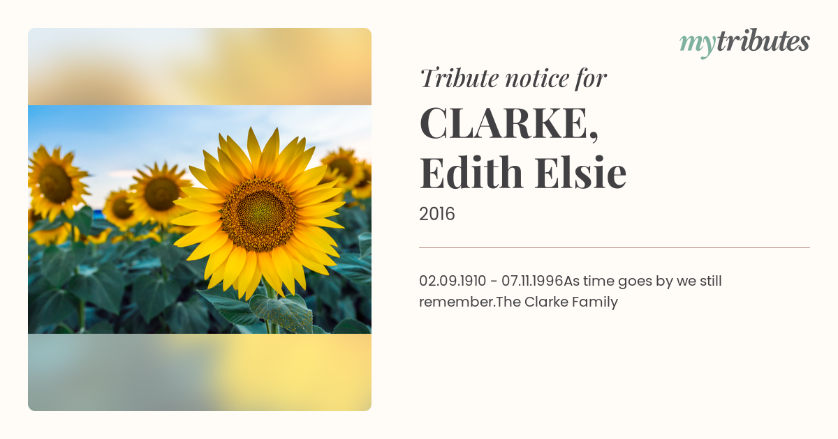 02.09.1910 - 07.11.1996As time goes by we still remember.The Clarke Family
