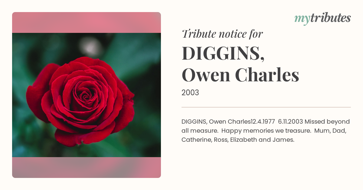 Missed beyond all measure. Happy memories we treasure. Mum, Dad, Catherine, Ross, Elizabeth and James.