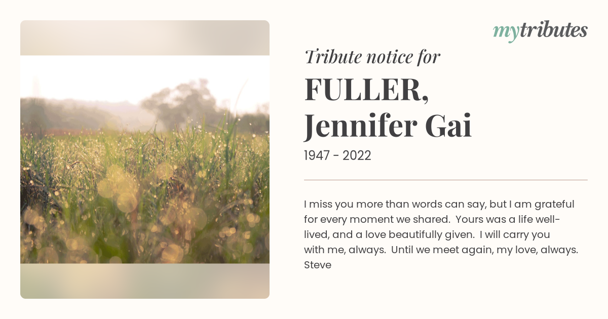 18°CI miss you more than words can say, but I am grateful for every moment we shared. Yours was a life well-lived, and a love beautifully given. I will carry you with me, always. Until we meet again, my love, always. Steve