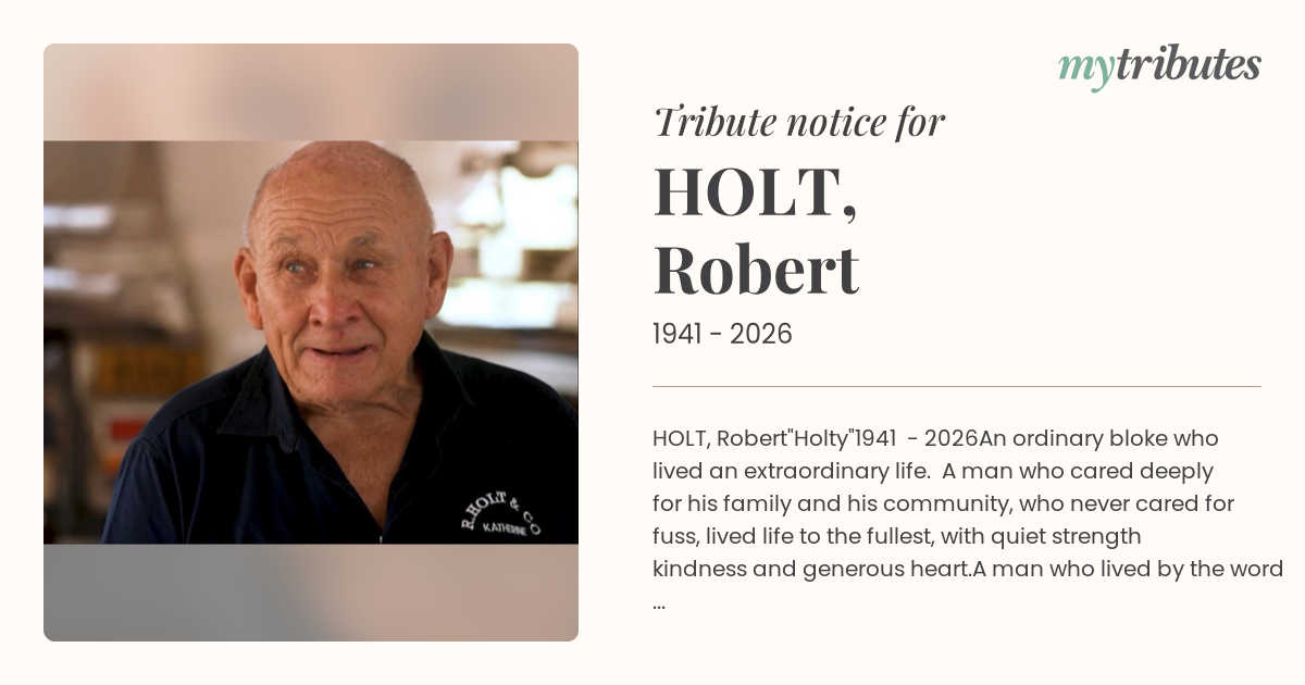 A heartfelt thank you to the local heroes who helped at the scene, the emergency services, CareFlight team, the staff at Katherine Hospital, Royal Darwin Hospital and Palliative Care. Your kindness and compassion for Bob and family during this difficult time came from the heart. The two words “thank you” do not cover how much you mean to us.