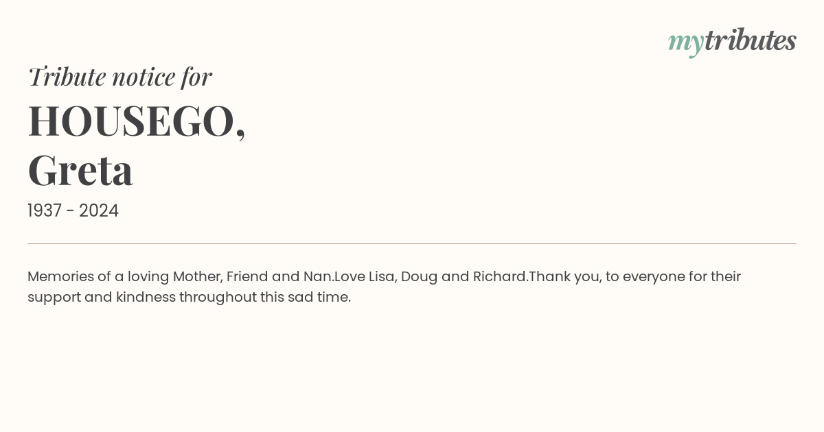 Thank you, to everyone for their support and kindness throughout this sad time.