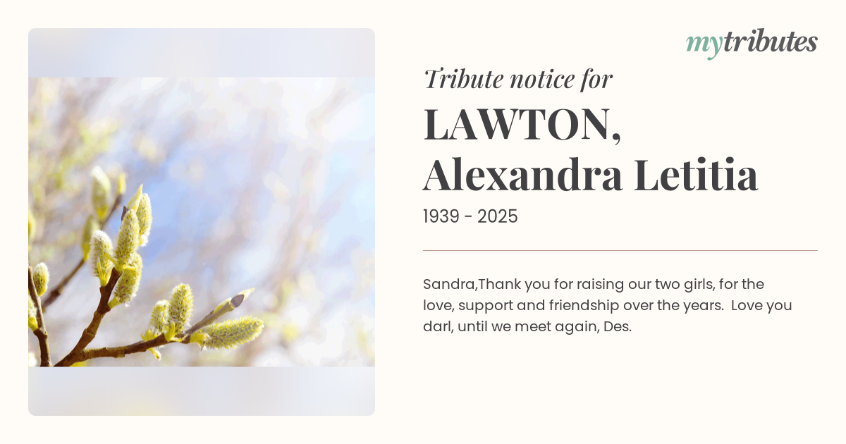 Thank you for raising our two girls, for the love, support and friendship over the years. Love you darl, until we meet again, Des.