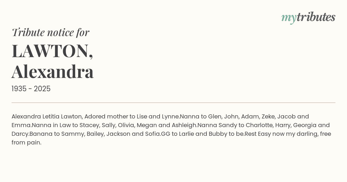 18°CAlexandra Letitia Lawton,