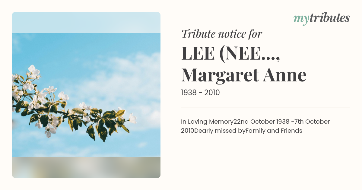 In Loving Memory22nd October 1938 -7th October 2010Dearly missed byFamily and Friends