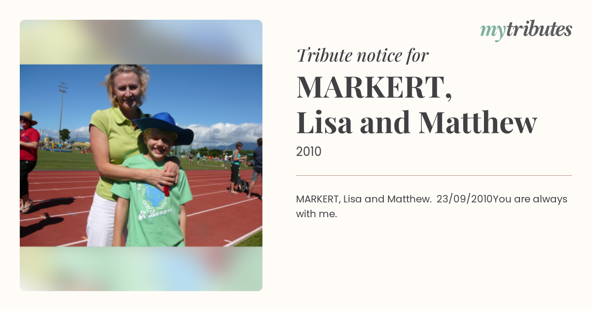 MARKERT, Lisa and Matthew. 23/09/2010You are always with me.