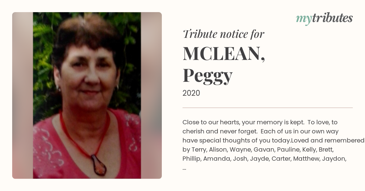 Loved and remembered by Terry, Alison, Wayne, Gavan, Pauline, Kelly, Brett, Phillip, Amanda, Josh, Jayde, Carter, Matthew, Jaydon, Kayleb, Sarah-Maree, Spencer and Harvey.