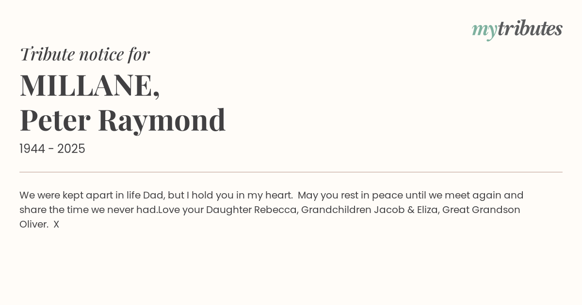 18°CWe were kept apart in life Dad, but I hold you in my heart. May you rest in peace until we meet again and share the time we never had.