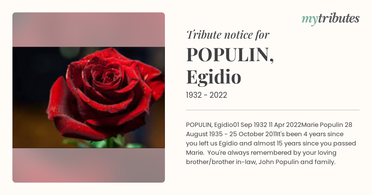 You're always remembered by your loving brother/brother in-law, John Populin and family.