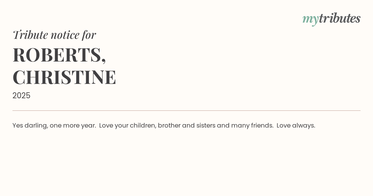 Love your children, brother and sisters and many friends.