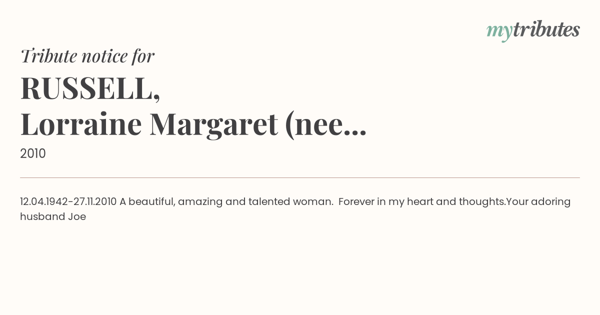 RUSSELL, Lorraine Margaret (nee Shuttlewood)