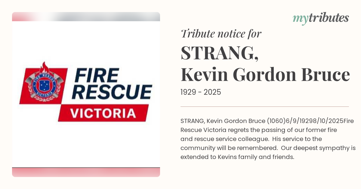 Fire Rescue Victoria regrets the passing of our former fire and rescue service colleague. His service to the community will be remembered. Our deepest sympathy is extended to Kevin’s family and friends.