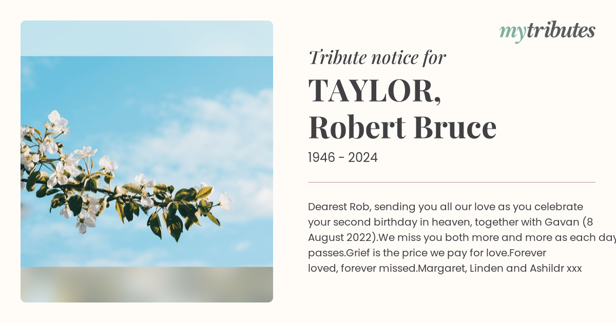 18°C‘Dearest Rob, sending you all our love as you celebrate your second birthday in heaven, together with Gavan (8 August 2022).