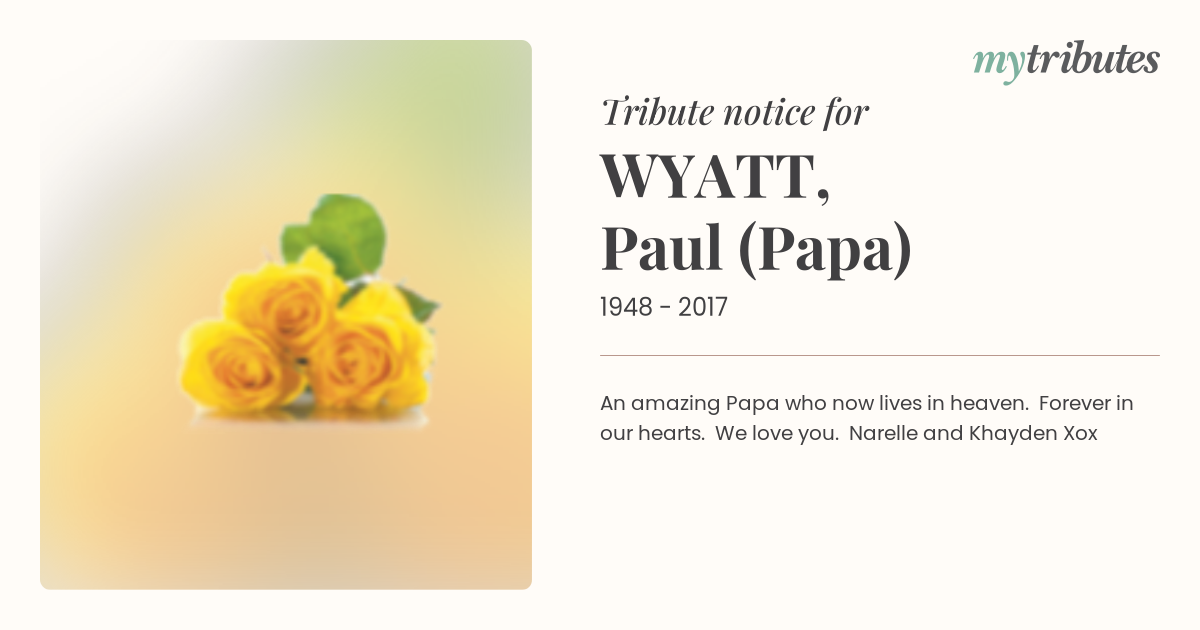 18°CAn amazing Papa who now lives in heaven. Forever in our hearts. We love you. Narelle and Khayden Xox