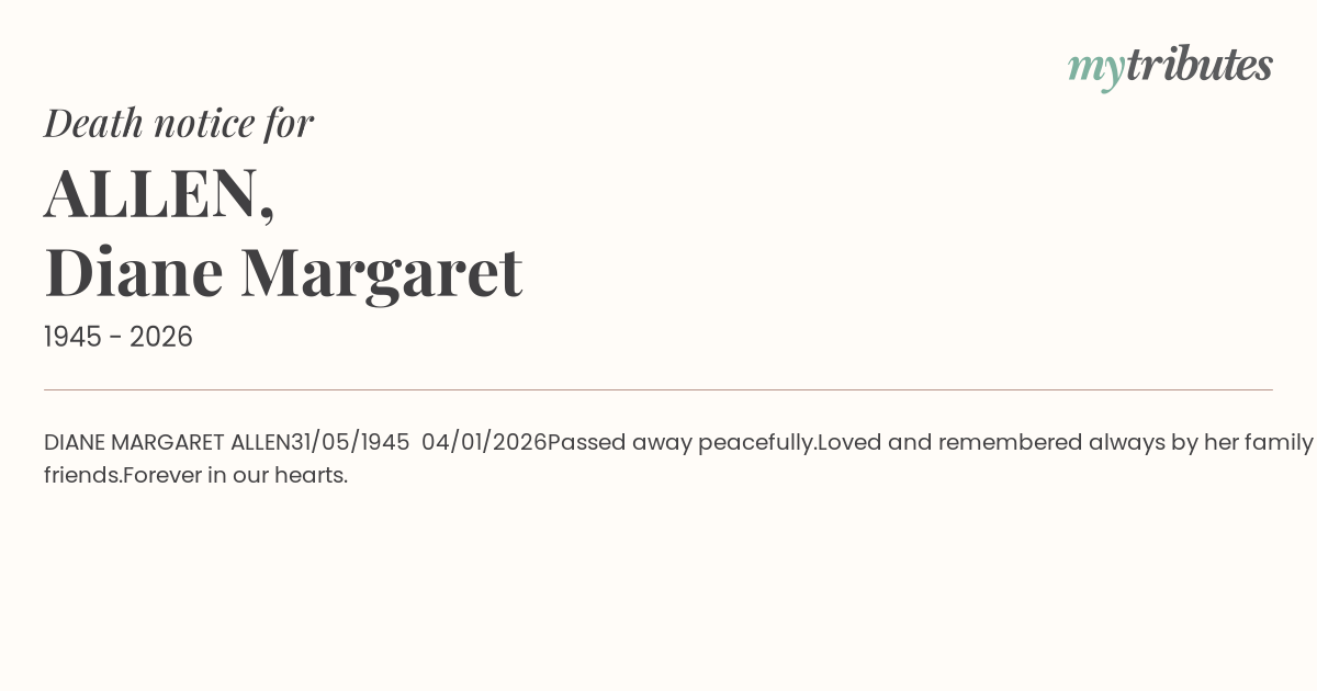 18°CDIANE MARGARET ALLEN