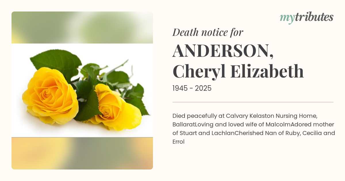 18°CDied peacefully at Calvary Kelaston Nursing Home, Ballarat