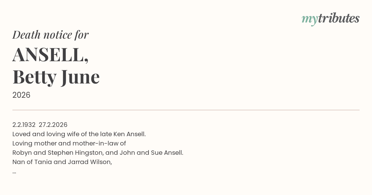 Loved and loving wife of the late Ken Ansell.