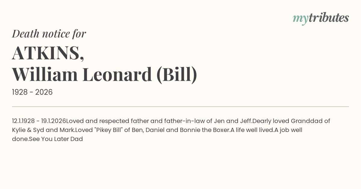 Dearly loved Granddad of Kylie & Syd and Mark.