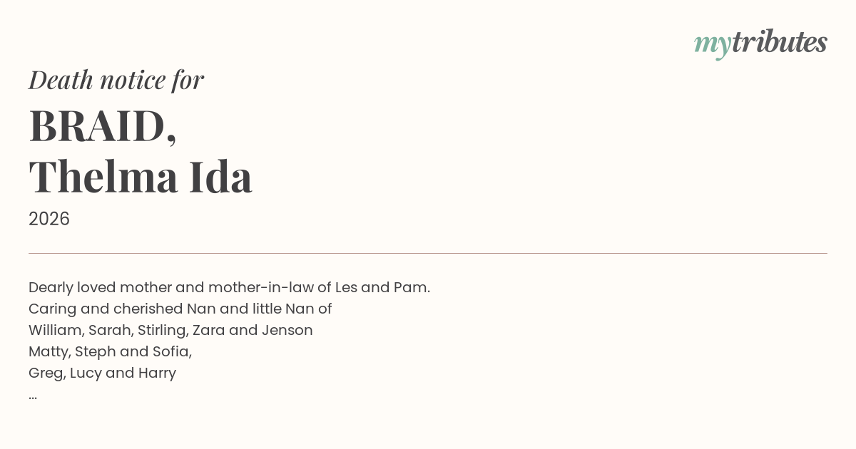 18°CDearly loved mother and mother-in-law of Les and Pam.