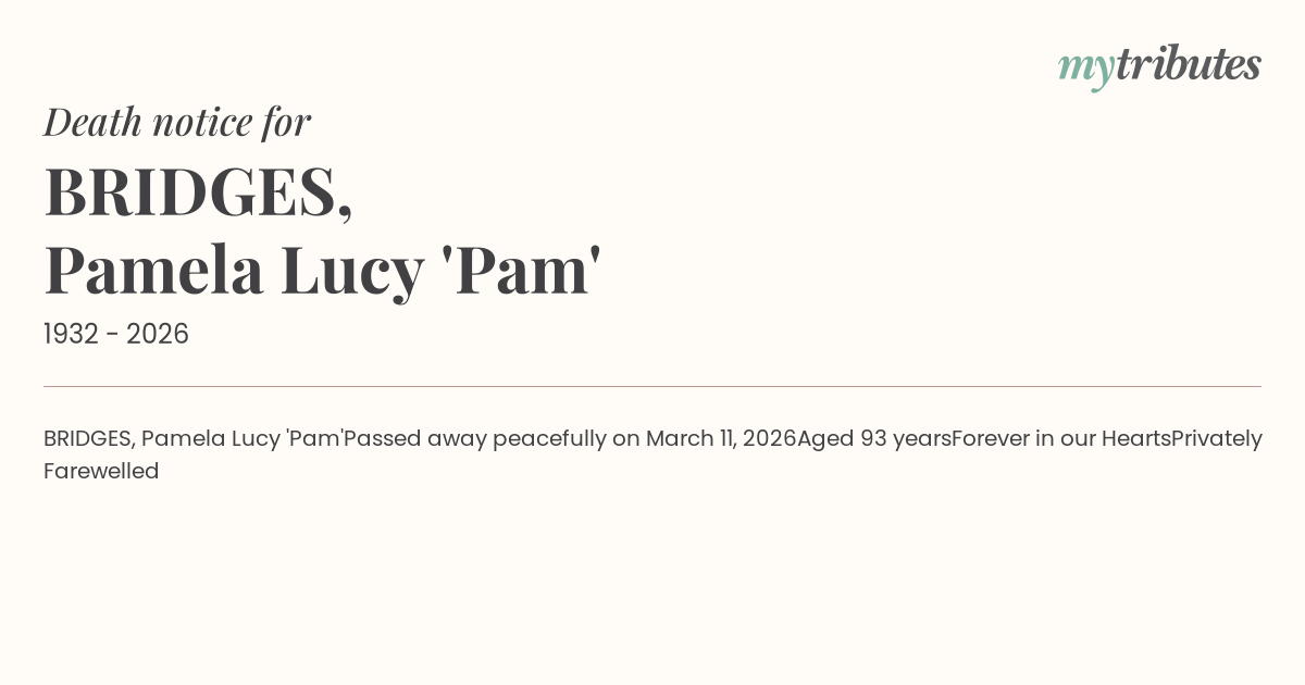 18°CBRIDGES, Pamela Lucy 'Pam'