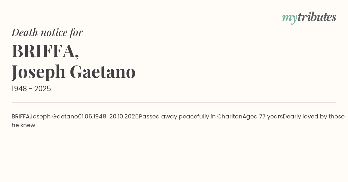 Passed away peacefully in Charlton