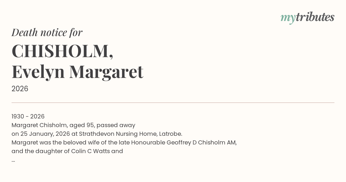 Margaret Chisholm, aged 95, passed away