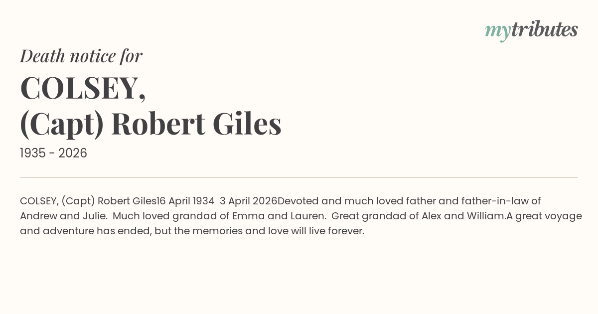 Devoted and much loved father and father-in-law of Andrew and Julie.