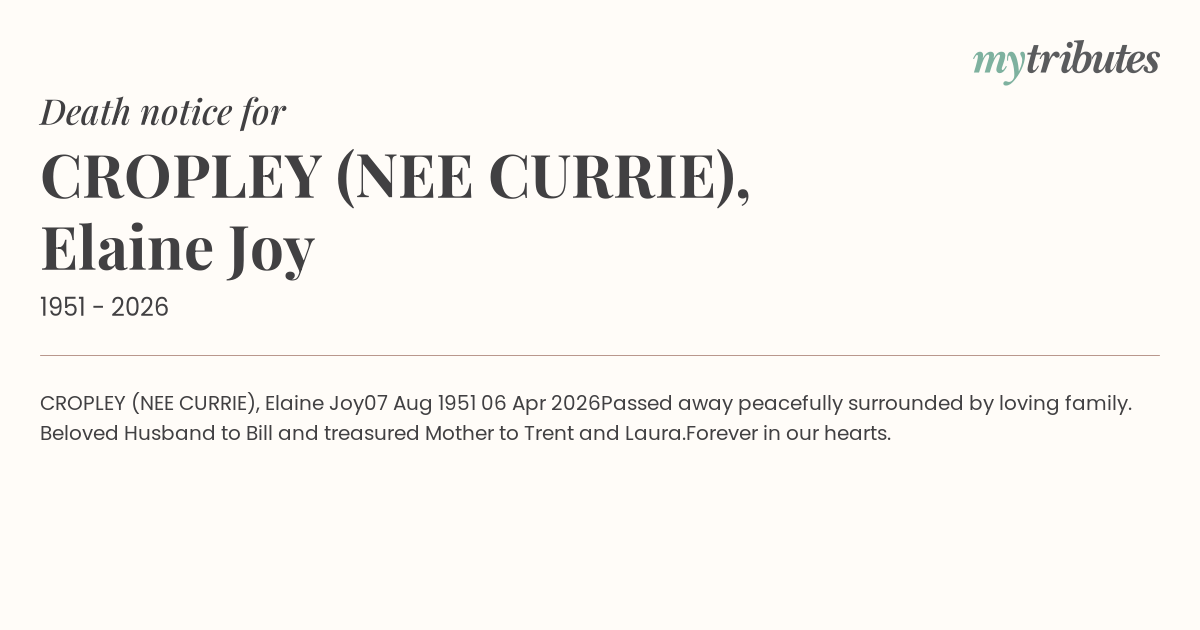 18°CCROPLEY (NEE CURRIE), Elaine Joy