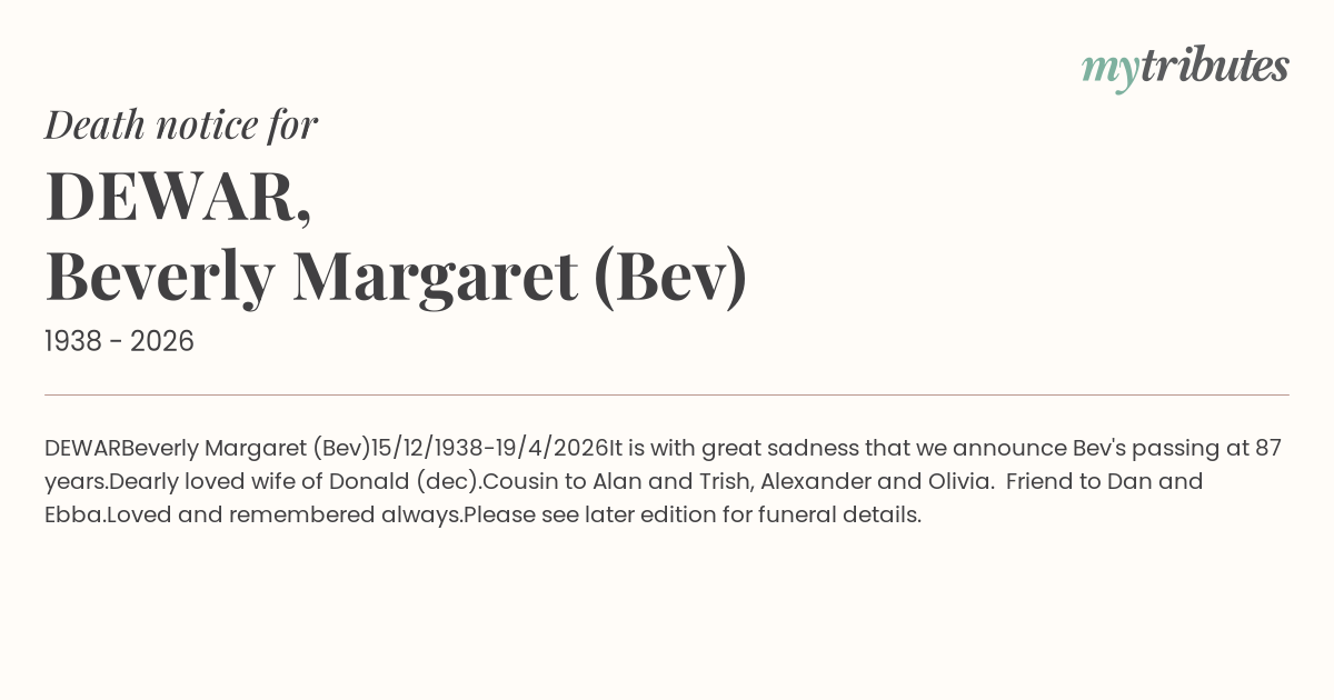 Beverly Margaret (Bev)