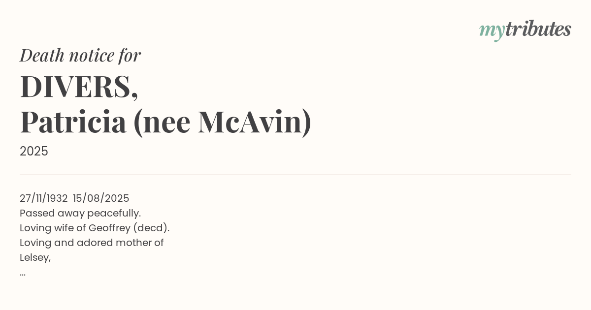 Loving wife of Geoffrey (dec’d).