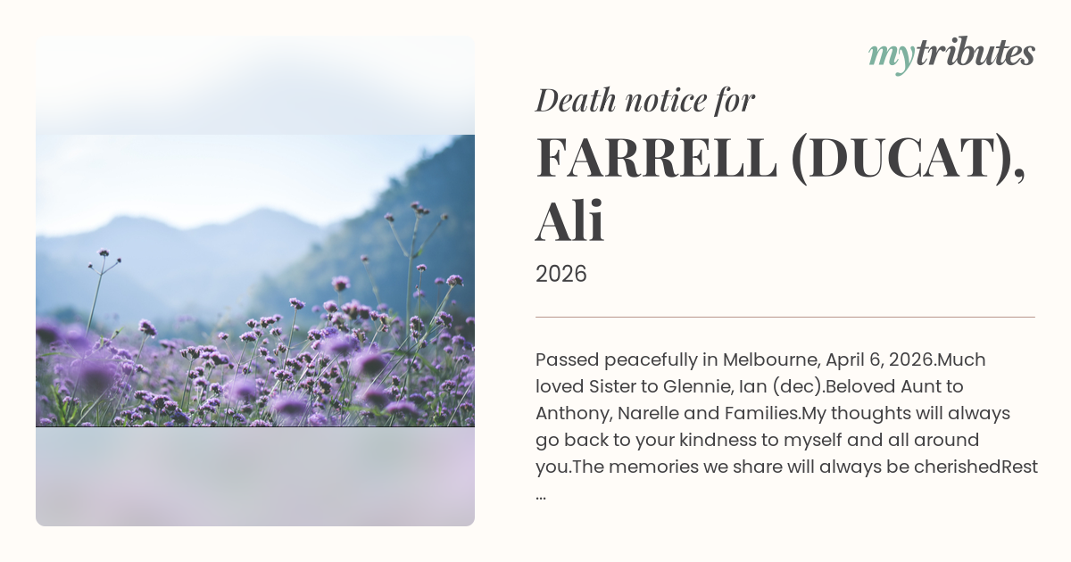 18°CPassed peacefully in Melbourne, April 6, 2026.