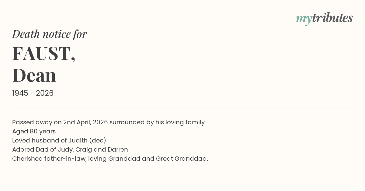 18°CPassed away on 2nd April, 2026 surrounded by his loving family