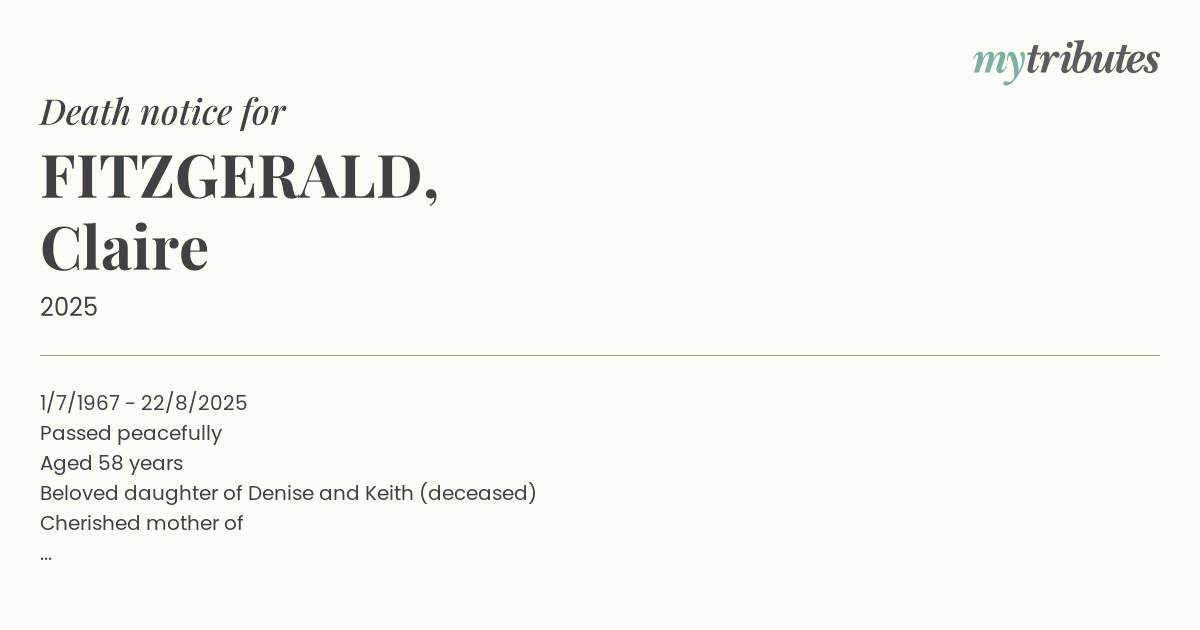 Beloved daughter of Denise and Keith (deceased)