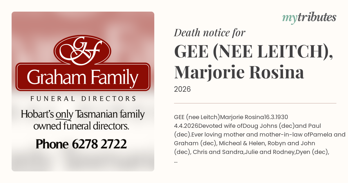 Funeral by : Graham Family Funerals Hobart