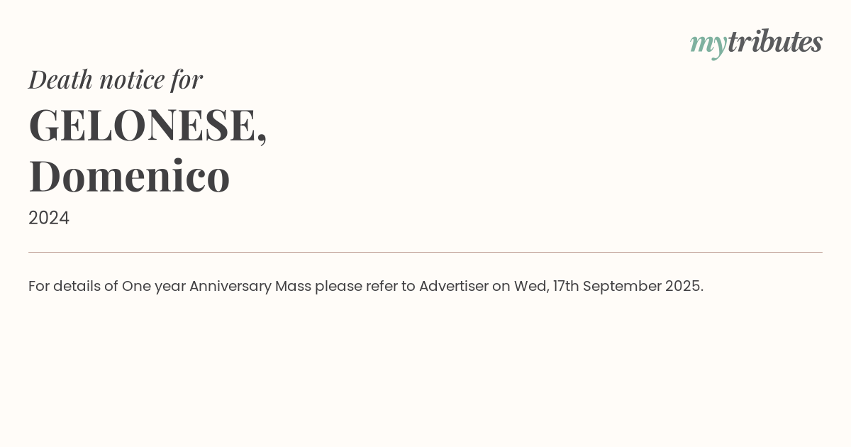 18°CFor details of One year Anniversary Mass please refer to Advertiser on Wed, 17th September 2025.