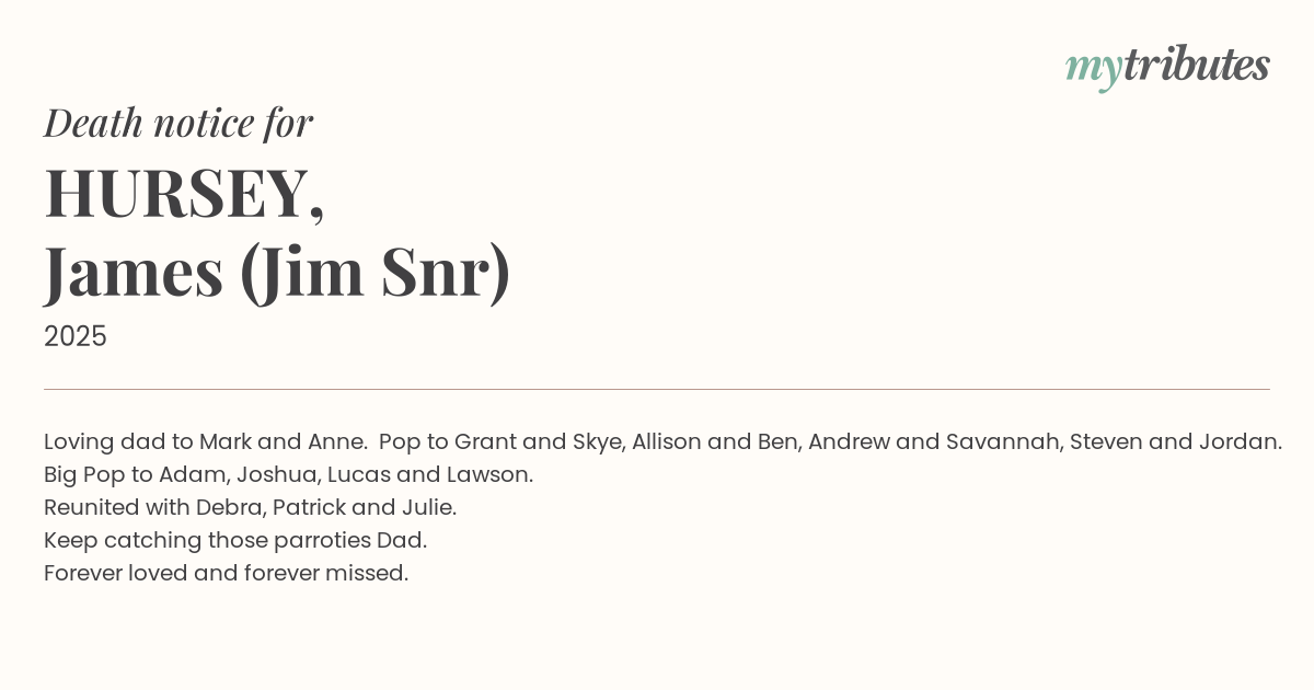18°CLoving dad to Mark and Anne. Pop to Grant and Skye, Allison and Ben, Andrew and Savannah, Steven and Jordan. Big Pop to Adam, Joshua, Lucas and Lawson.