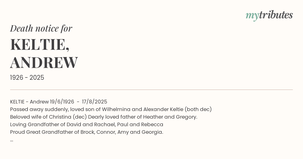 18°CKELTIE - Andrew 19/6/1926 - 17/8/2025