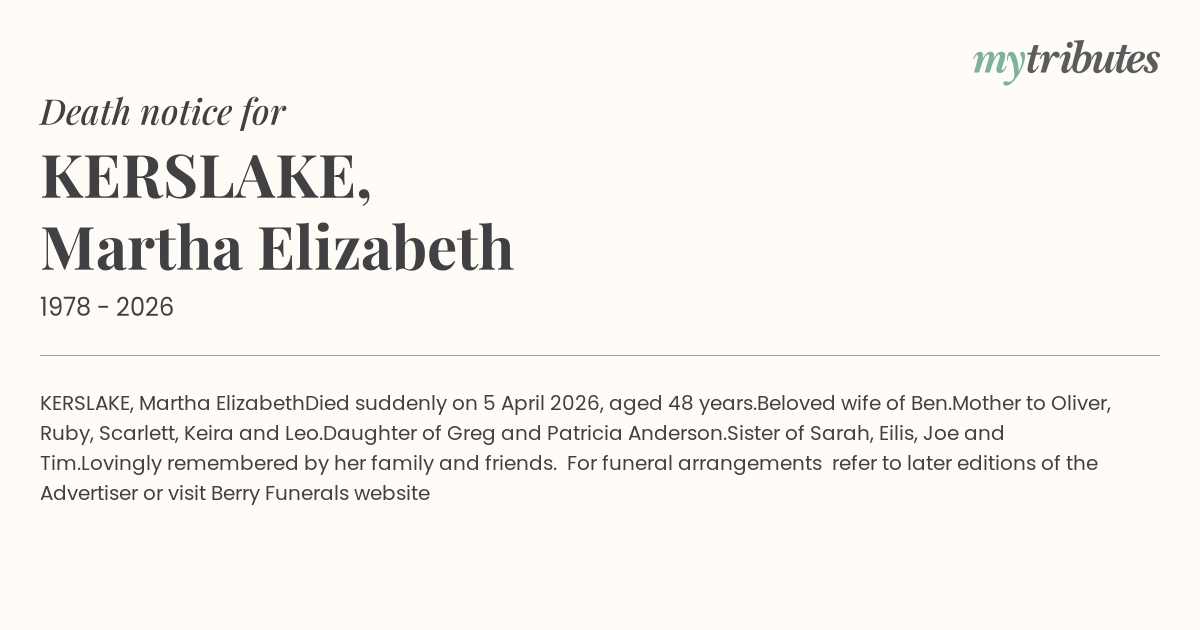 Died suddenly on 5 April 2026, aged 48 years.