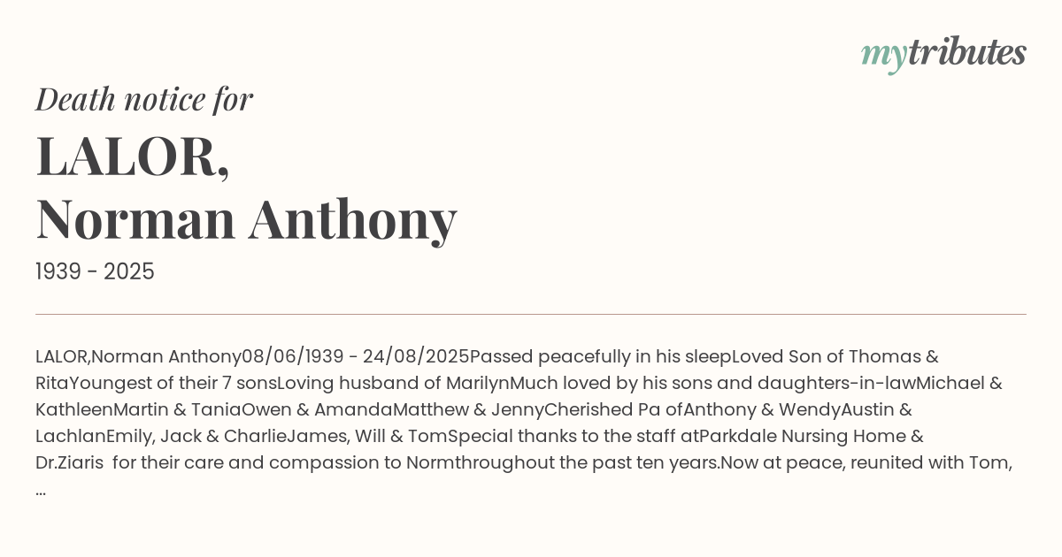 Parkdale Nursing Home & Dr.Ziaris for their care and compassion to Norm