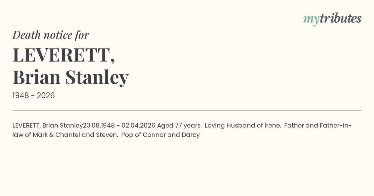 23.08.1948 - 02.04.2026 Aged 77 years.
