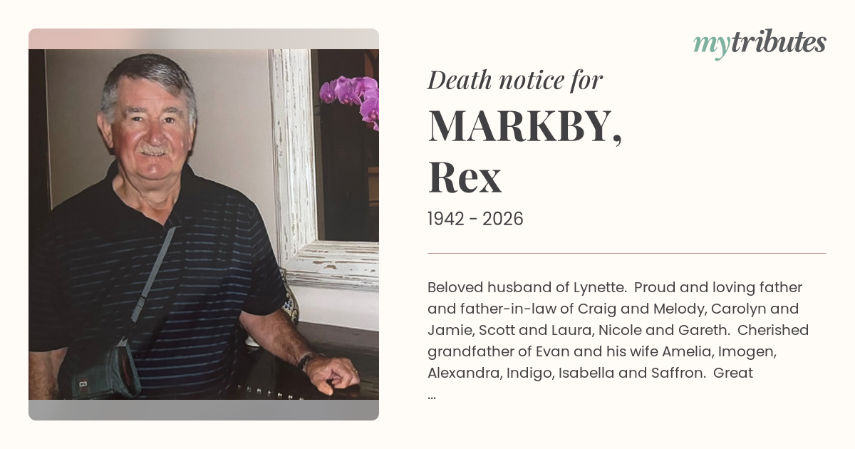 Cherished grandfather of Evan and his wife Amelia, Imogen, Alexandra, Indigo, Isabella and Saffron.