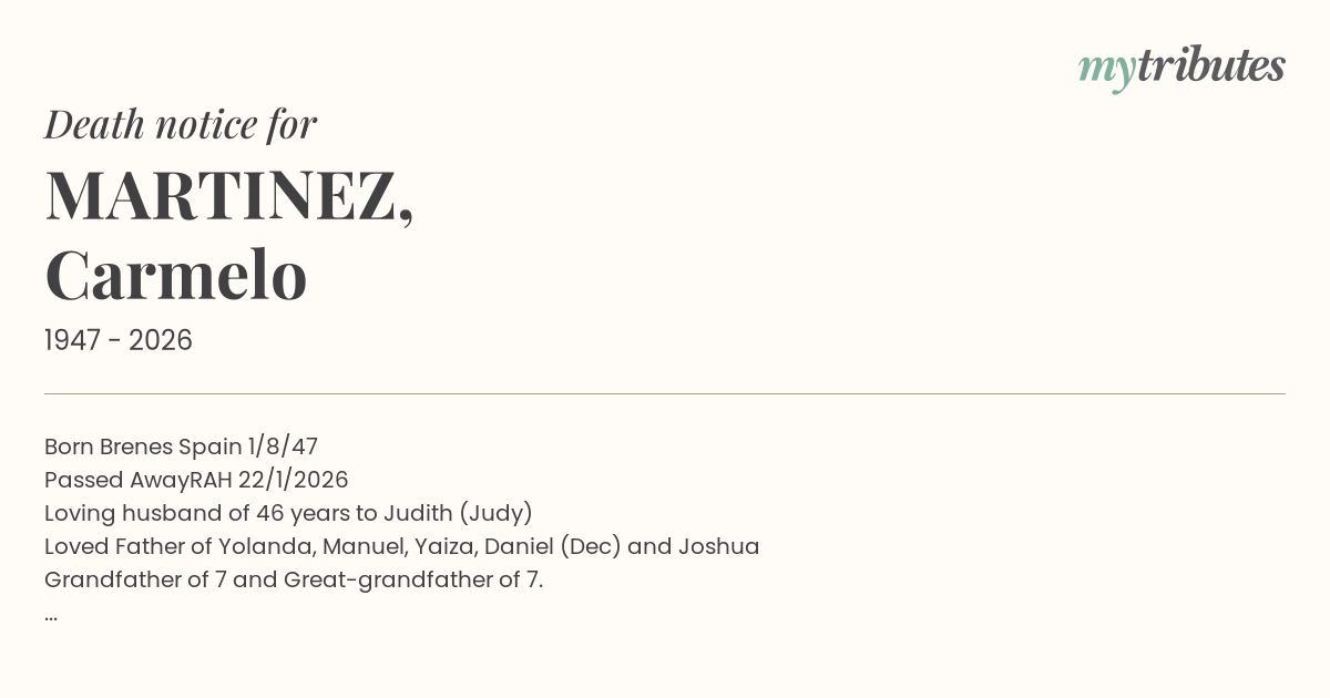 Loved Father of Yolanda, Manuel, Yaiza, Daniel (Dec) and Joshua