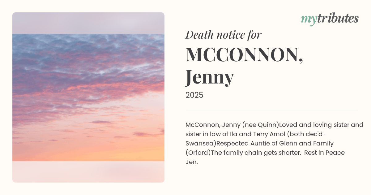 18°CMcConnon, Jenny (nee Quinn)